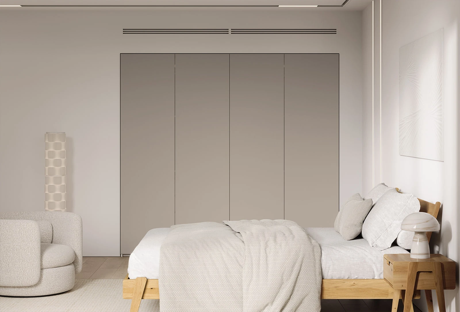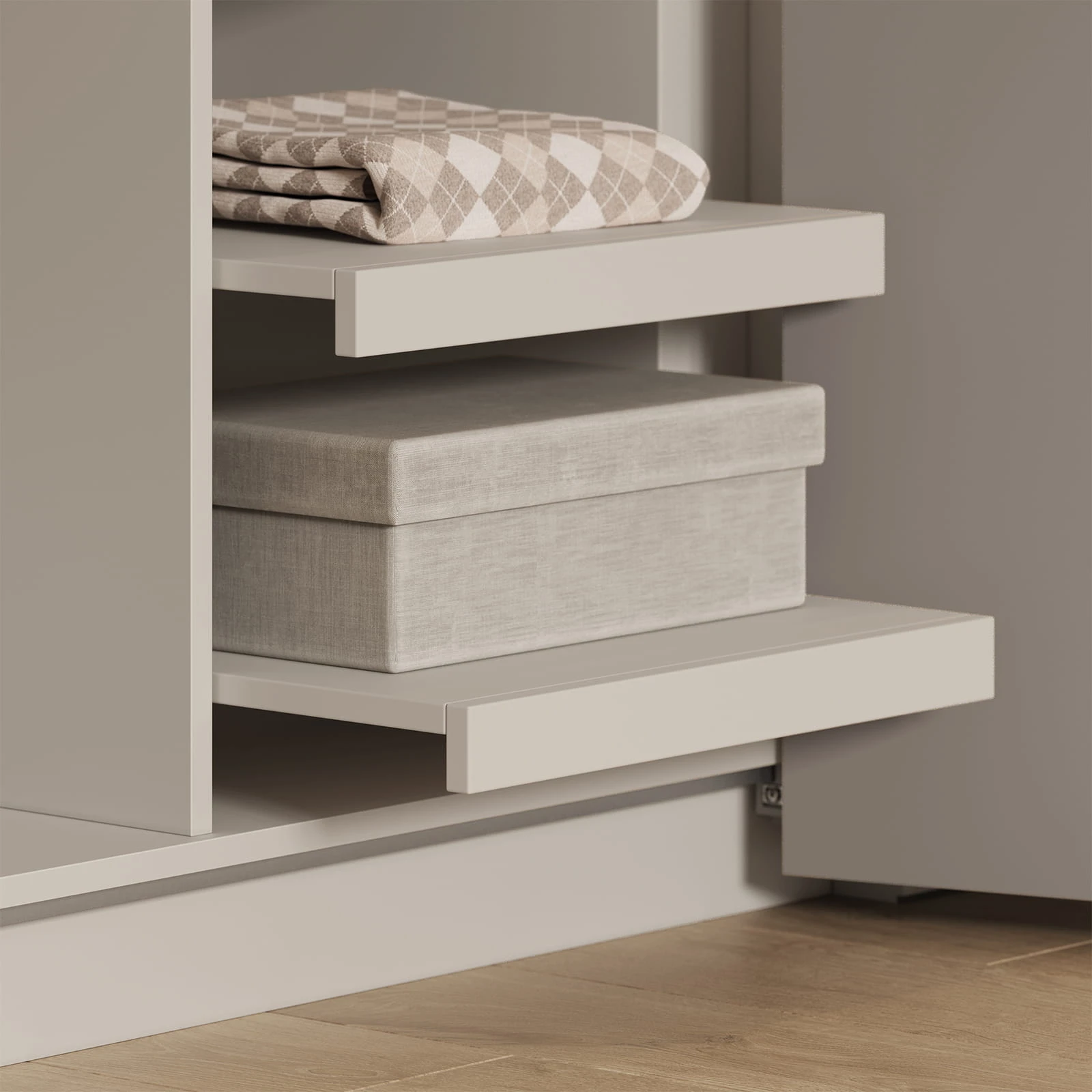 ФАСАДЫ ЛМДФ PRIME, цвет Меринос, КАРКАС, ПОЛКИ, ЗАДНЯЯ СТЕНКА ЛДСП, цвет Ярко-серый