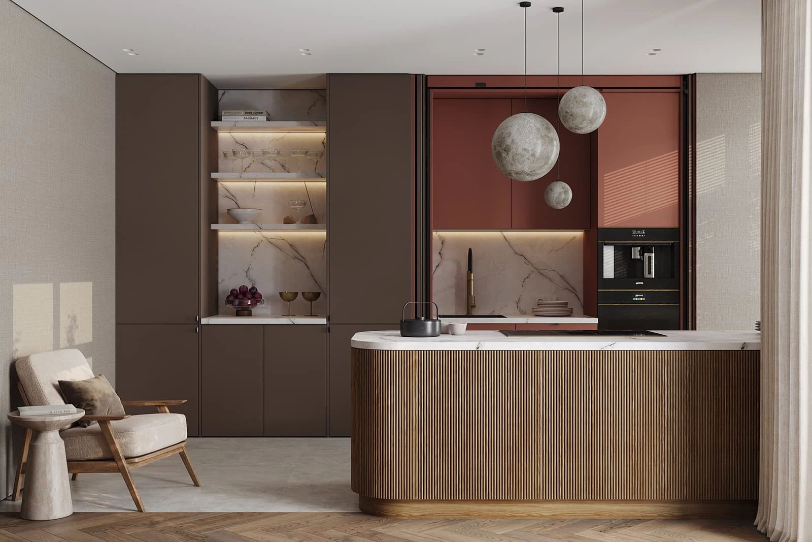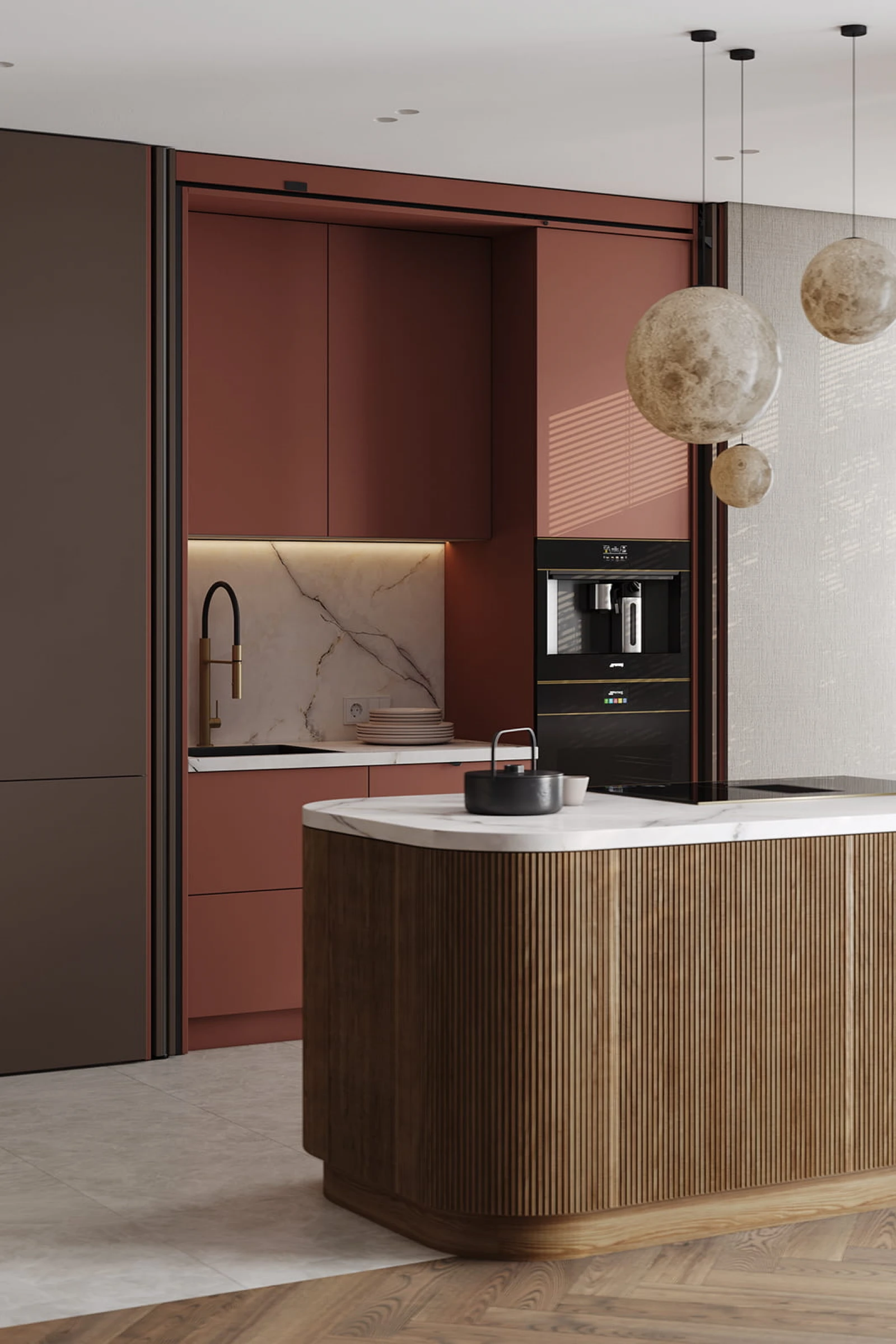 ЛМДФ PRIME, цвет Камень Фундо / Терракота Тосканы; T430 Шпон дуба, цвет #111,