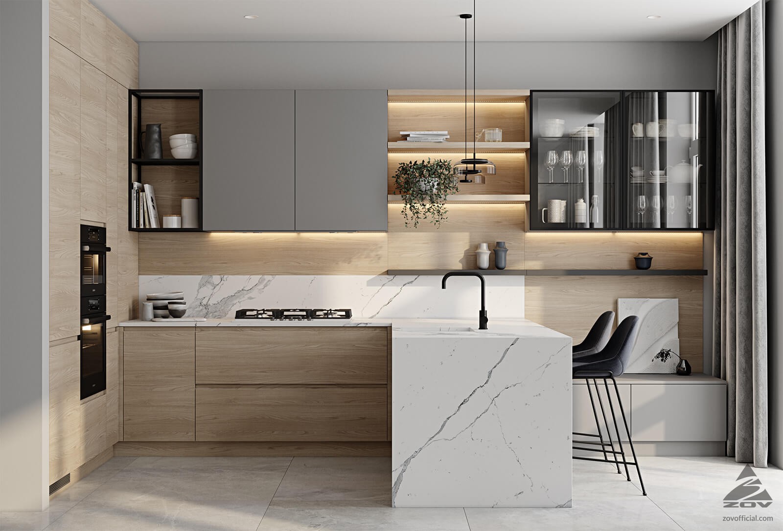 ФАСАДЫ ЛМДФ, цвет Дымчатый Супрамат / Т422 Шпон дуба, цвет #183 (масловоск Бесцветный)