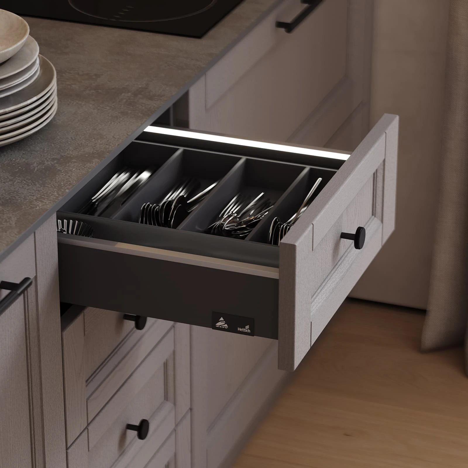ФАСАДЫ Т760 Натуральный дуб, цвет 124 / #190 (масловоск Натуральный) , СТОЛЕШНИЦА Компакт-плита, 12 мм, декор Цинк Нирвана