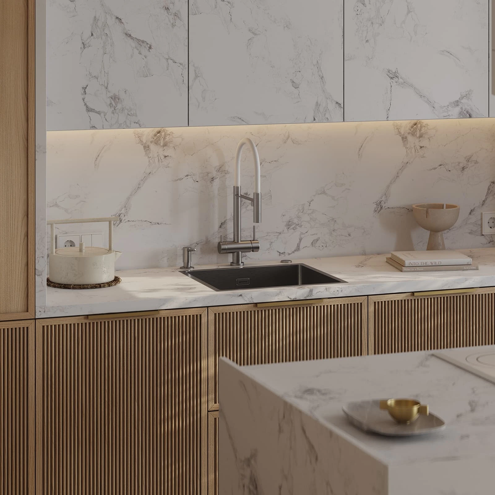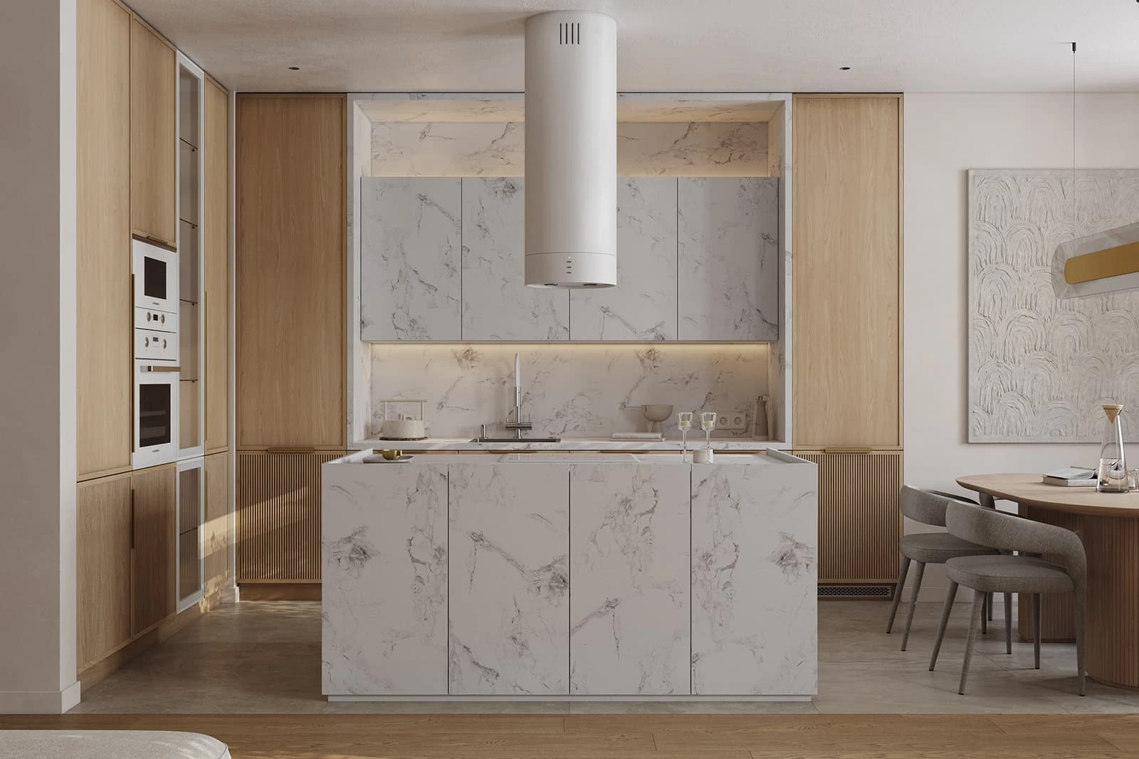 Т431В / Т441 Шпон дуба, цвет #183 (масловоск Бесцветный) / пластик HPL Möbius Soft Touch, декор Мрамор Бернини,