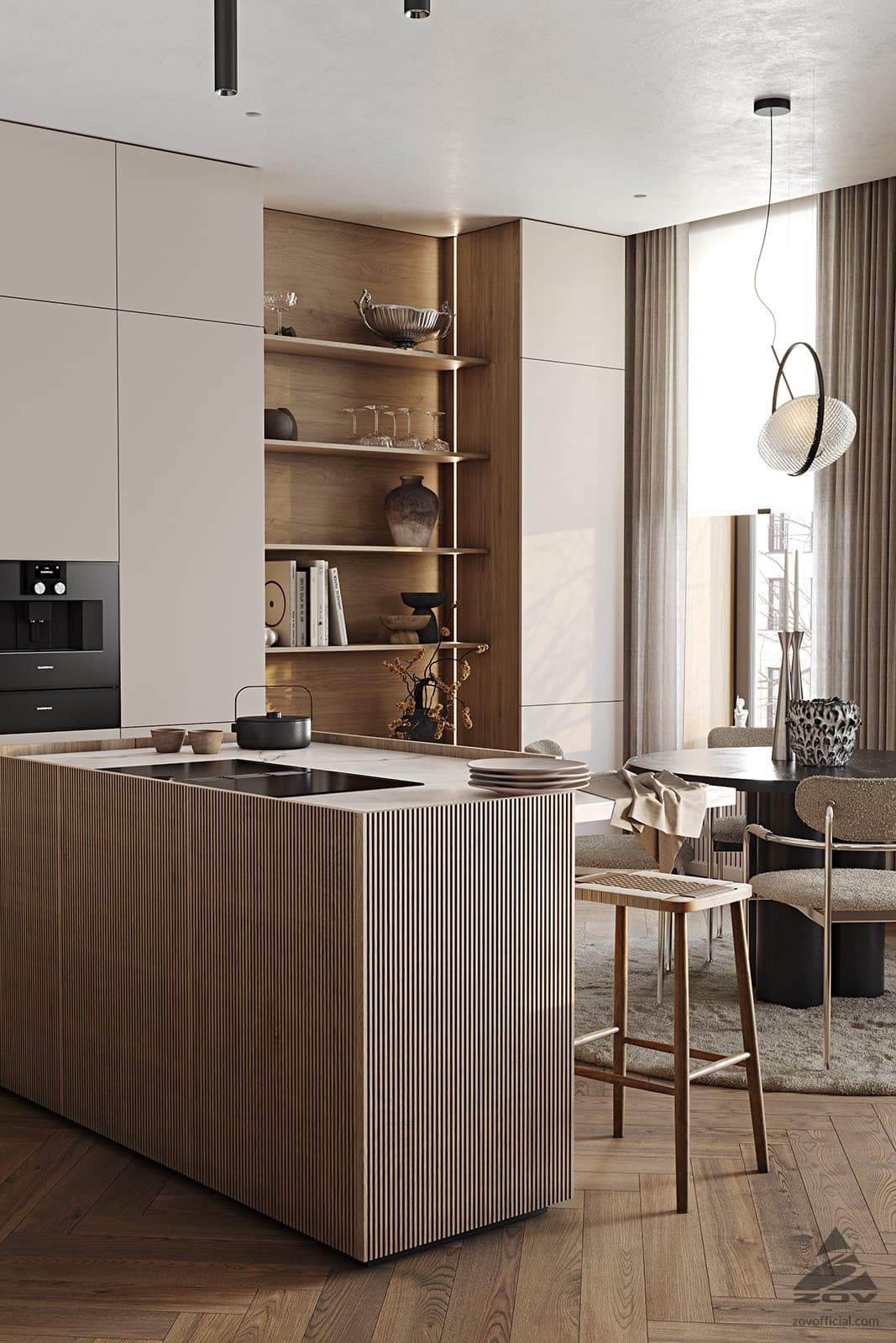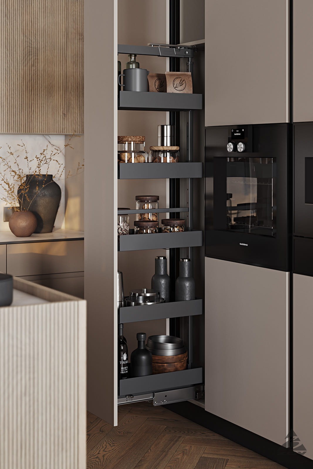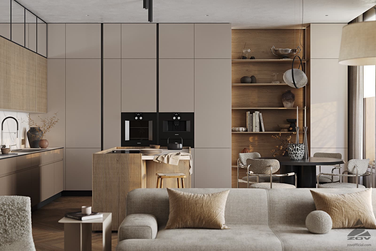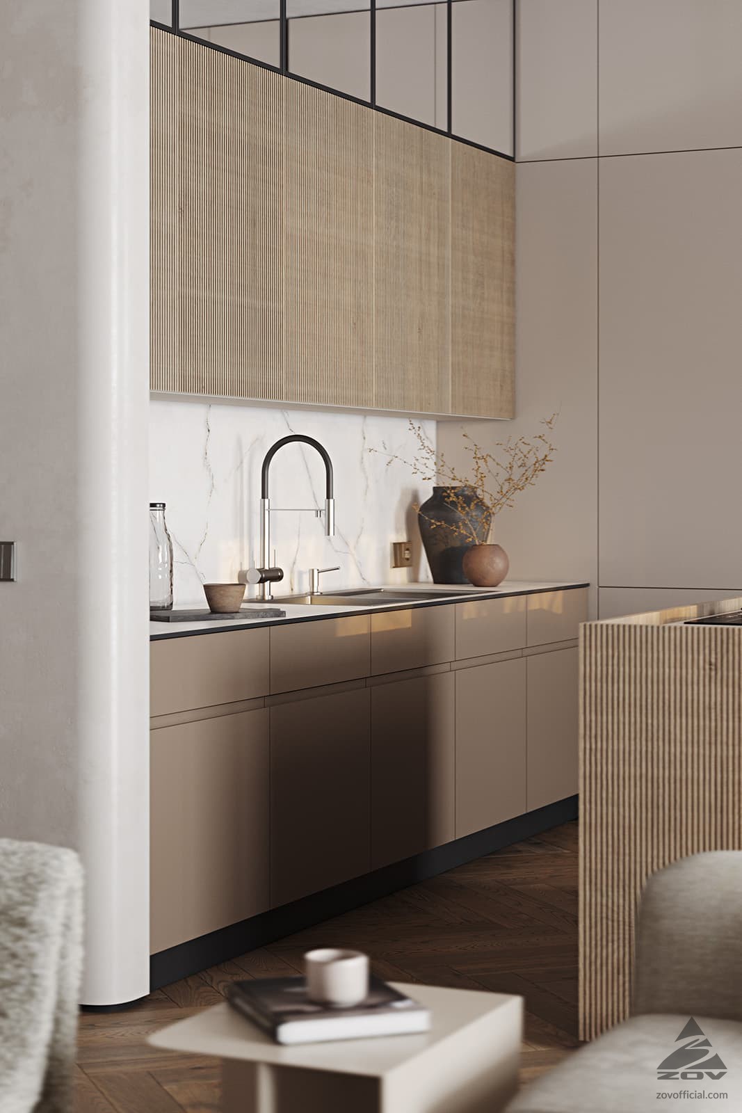 Т440 Шпон дуба, цвет #189 (воскобейц Белый) / акрил FENIX NTM, цвет Серо-бежевый NTM (0748) / крашеная МДФ, цвет NCS S 5010-Y50R Матовый,