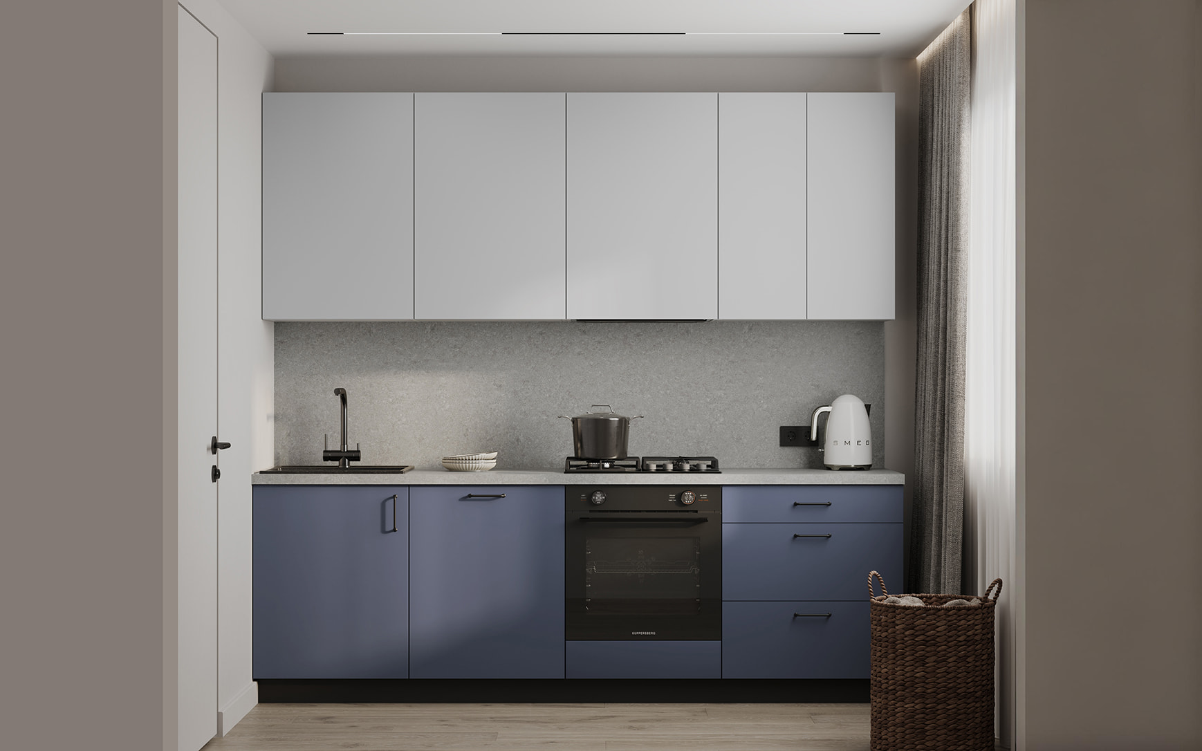 ЛМДФ EVOGLOSS, цвет Матовый Синий / Матовый Светло-серый,