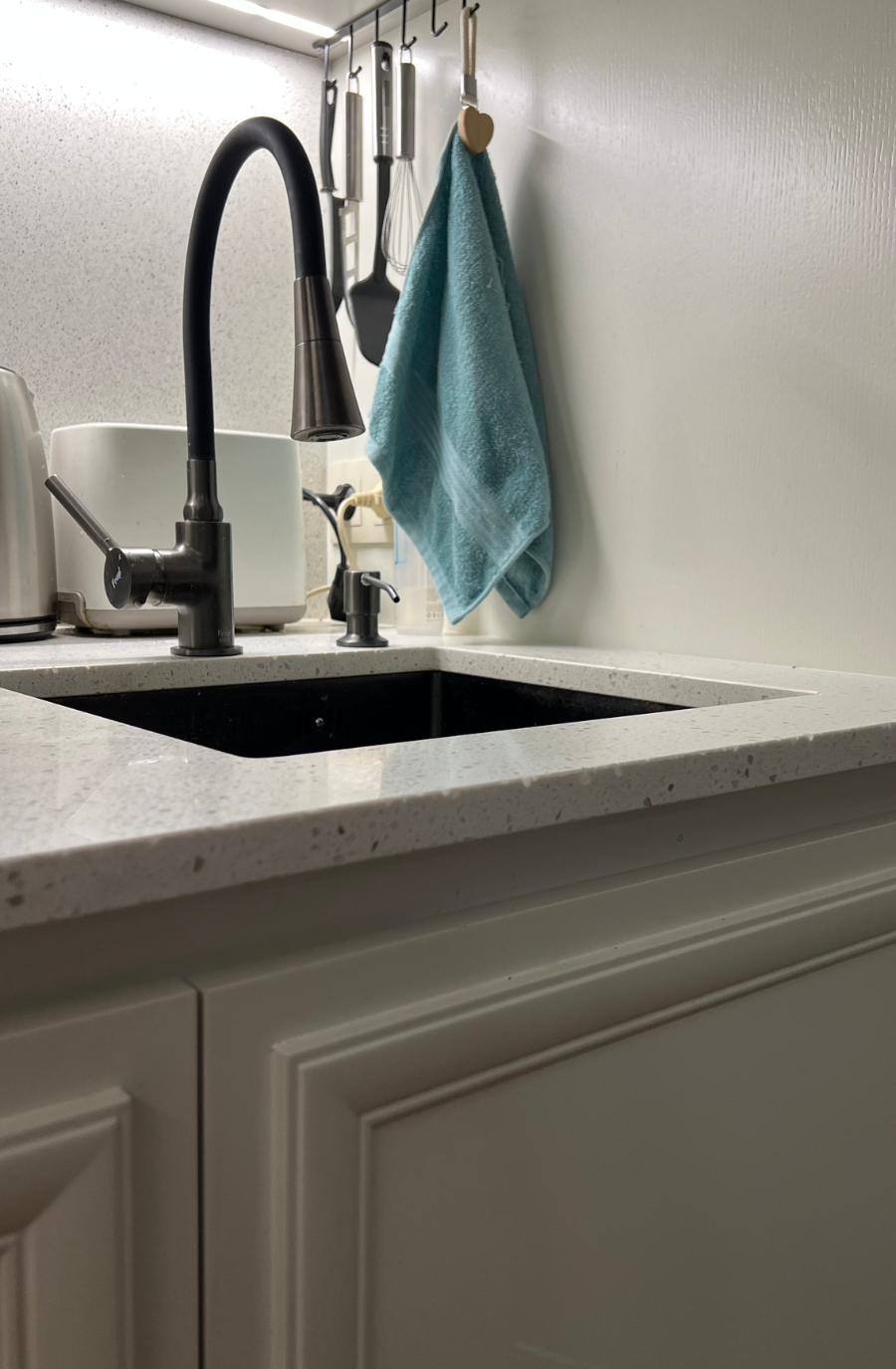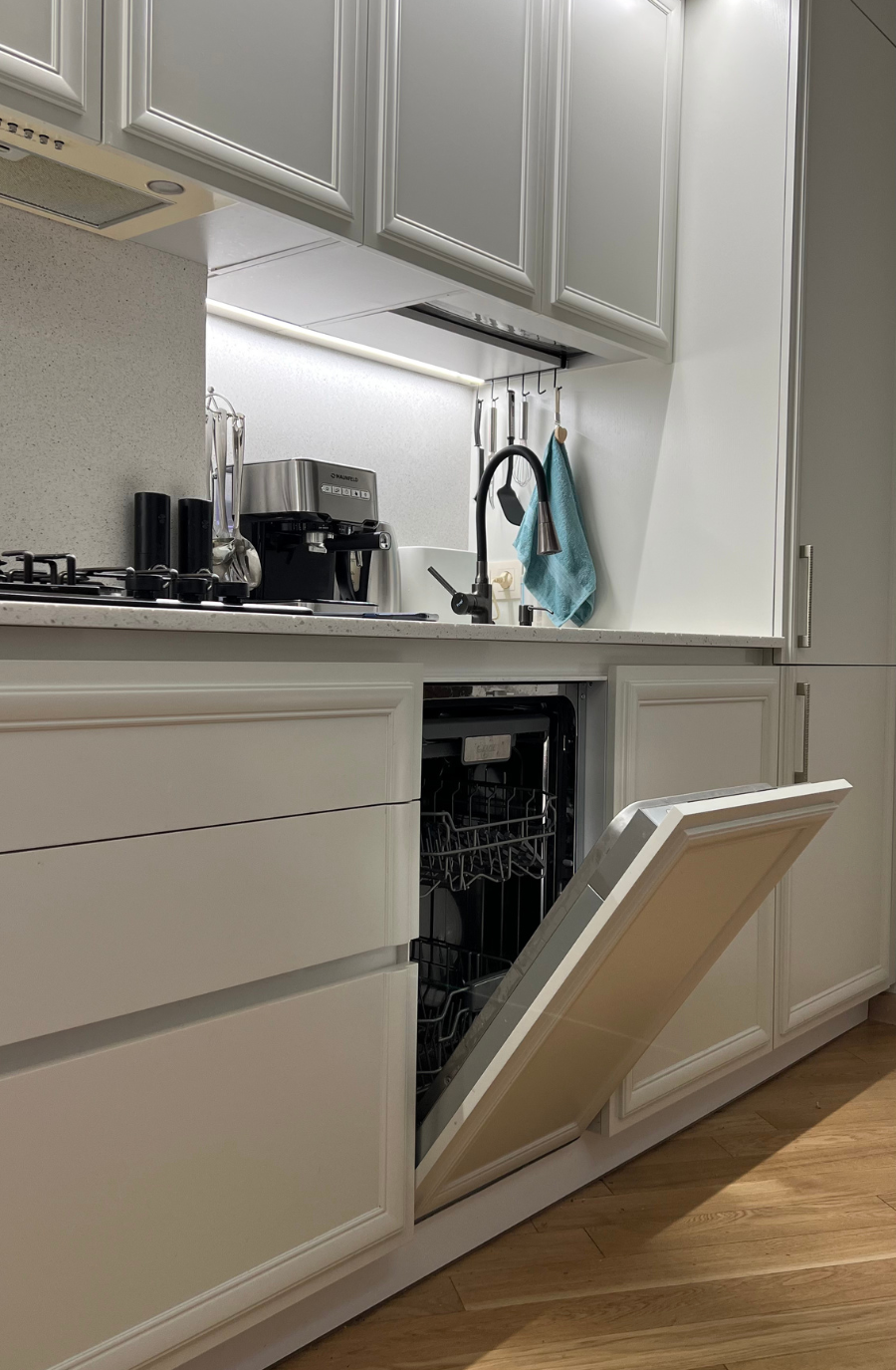 Петли Blum clip top blumotion, все выдвижные- Hettich InnoTech, гола профиль, столешница- кварцевый агломерат