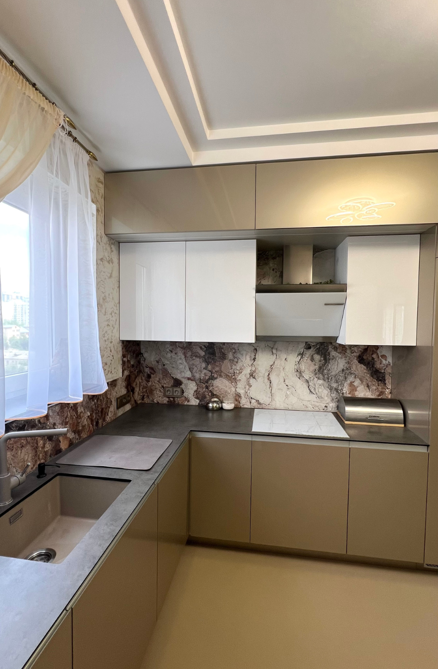 Стильная угловая кухня с LED-подсветкой